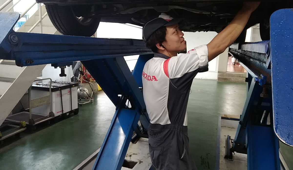 - 無資格未経験でも整備士として仕事ができ、働きながらの資格取得を応援して頂けるということを知ったからです。さらに給料、福利厚生面でもやったらやった分だけ反映されるというのも大きな魅力でした。